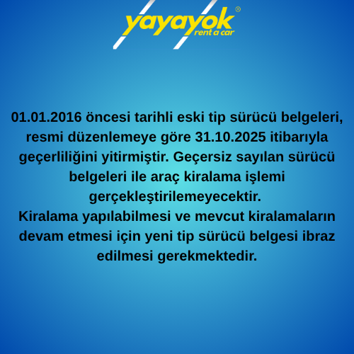 Yayayok ile araç kiralamak çok kolay, yine de merak ettiğiniz sorularınız olur ise bu bölümden cevap bulabilirsiniz. Eğer daha farklı bir sorunuz varsa bize e-posta ile iletmenizi rica ederiz.